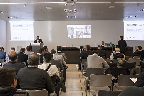 The workshop developed in 2 phases: in the morning, it has been offered a general theoretical presentation on IO-Link standard; in the afternoon, the speakers, with a more practical approach, let the participants know more about the point-to-point communication standardized with sensors and actuators and focused the attention on the components’ interaction (master, device, engineering and control) and on the different application possibilities.